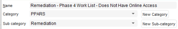 Rename the report 'Remediation - Phase 4 Work List - Does Not Have Online Access' and select the same category and sub category as previously Within Report Joining: