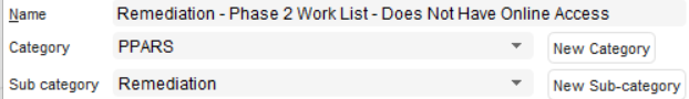 Rename the report 'Remediation - Phase 2 Work List - Does Not Have Online Access' and select the same category and sub category as previously Within Report Joining: