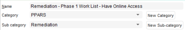 Rename the report 'Remediation - Phase 1/2 Worklist' and select the same category and sub category as previously Within Report Joining: