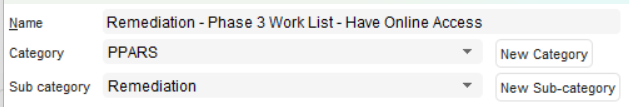 Rename the report 'Remediation - Phase 3 Worklist - Have Online Access' and select the same category and sub category as previously Within Report Joining: