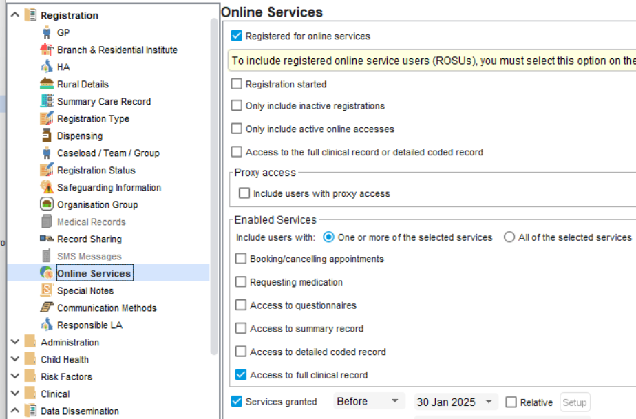 - Create a sub-report to identify patients who have online access to their full clinical record