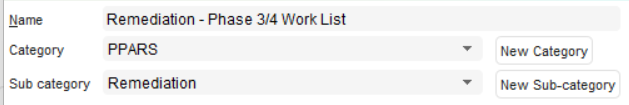 Rename the report 'Remediation - Phase 3/4 Worklist' and select the same category and sub category as previously Within Report Joining: